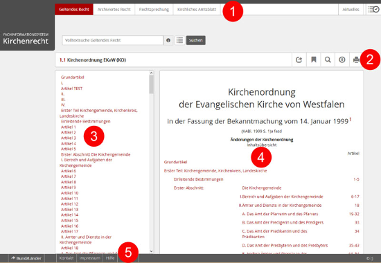 - SeitennavigationJe nach dem auf welcher Seite Sie sich befinden, sehen Sie hier z. B. die Gliederung einer Ordnungsnummer oder die Filterkriterien für die Suche.Die Seitennavigation wird bei Verkleinerung der Seite (z. B. bei einem kleineren Bildschirm) durch das Listensymbol ersetzt, um dem Inhalt genügend Platz zu lassen.
